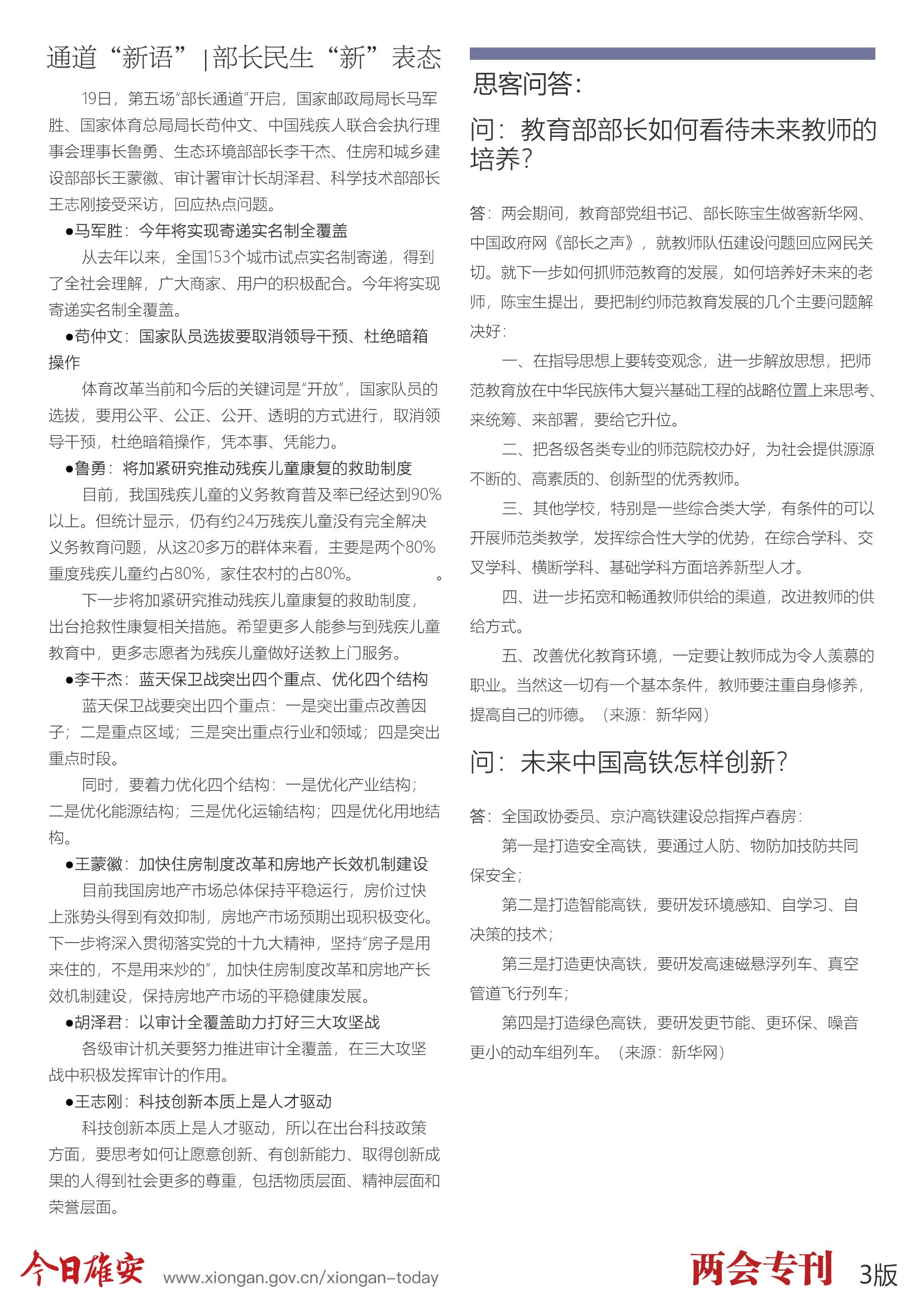 《今日雄安》两会专刊 2018年3月19日 第10期