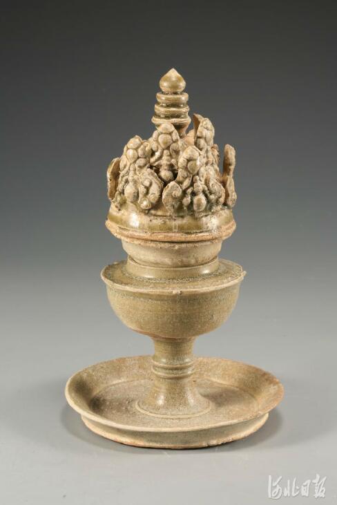 4月21日,由邢台市文物管理处等单位主办的“邢窑特展”与河北省古陶瓷学会主办的“磁州窑瓷枕精品展”,联袂在河北博物院开展。图为展览上展出的隋代青釉博山炉。河北博物院供图