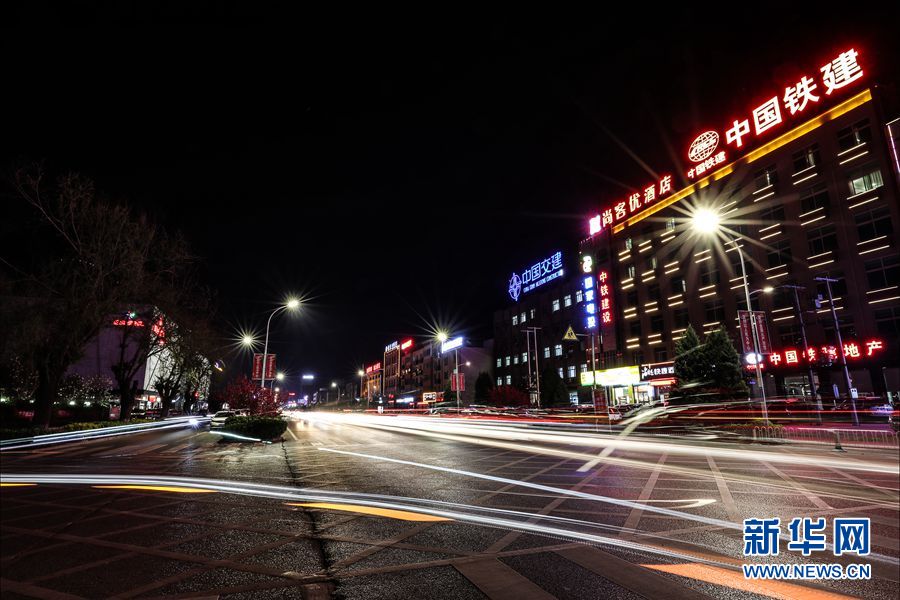 容城县奥威路夜景,这里被外界称为“央企大街”。中国雄安官网记者 王永康 摄