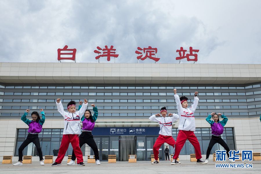白洋淀火车站广场,容城一儿童街舞培训班正在拍摄宣传片。中国雄安官网记者 王永康 摄