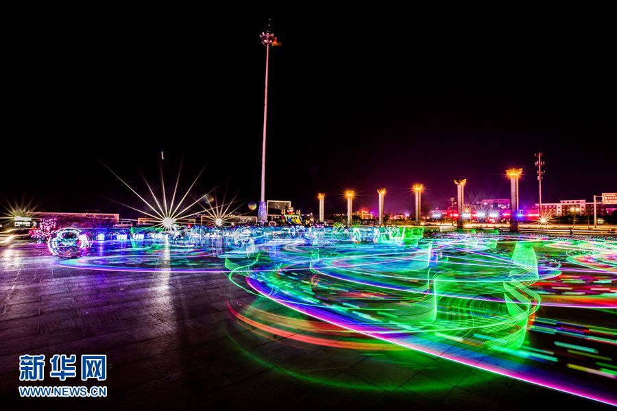 夜幕中的三贤广场,孩子们的玩具车留下五光十色的轨迹。中国雄安官网记者 王永康 摄