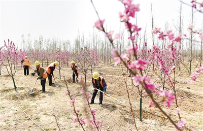 4月20日,雄安新区9号地块一区造林工程施工现场,园林工人正在修整灌水堰。该工程是雄安新区建设森林城市,实现新区蓝绿交织、清新明亮生态环境的重要举措,将成为城市组团之间的重要生态缓冲区和生态福利共享区,形成以近自然林为主、景观游憩相结合的生态景观片林。 记者 田明 赵海江摄