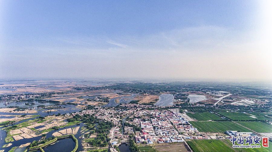 4月25日,雄安新区安新县大张庄村航拍图。碧空如洗,白洋淀边的村庄错落有致。 王永康 摄
