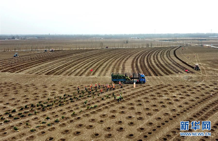 这是河北雄安新区“千年秀林”工程施工现场(3月21日无人机拍摄)。新华社记者 杨世尧 摄