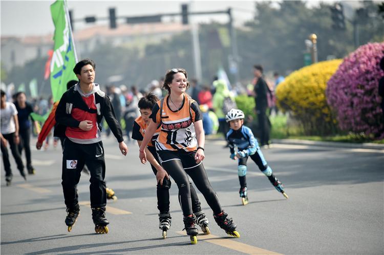 “五一”假日,有人出游赏景,有人活动嬉戏,有人依然坚守在工作岗位上……人们以各种方式乐享假期。4月29日,“2018运动之春第十四届北戴河轮滑节暨第十二届全国少年速度轮滑锦标赛”开幕,图为国内外轮滑爱好者们快乐滑行。 赵杰摄