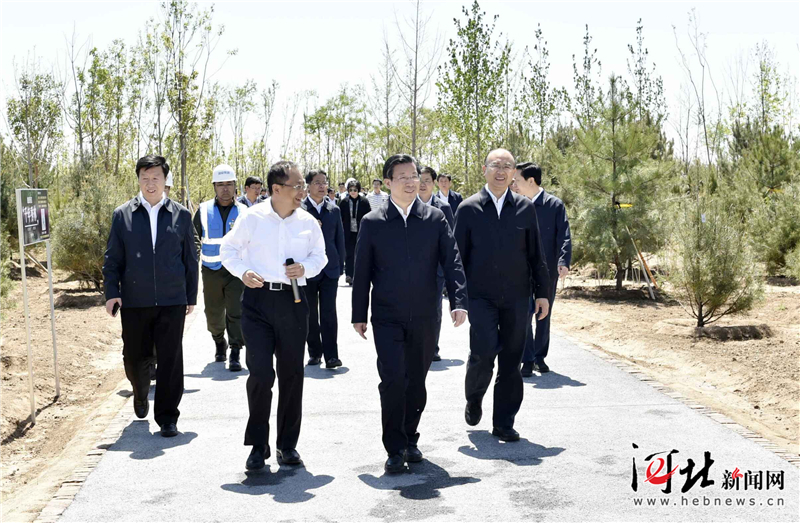 5月3日,省委理论学习中心组利用一天时间,到雄安新区现场调研并举行学习报告会。这是与会同志参观考察城市森林植树造林点。 记者赵威摄