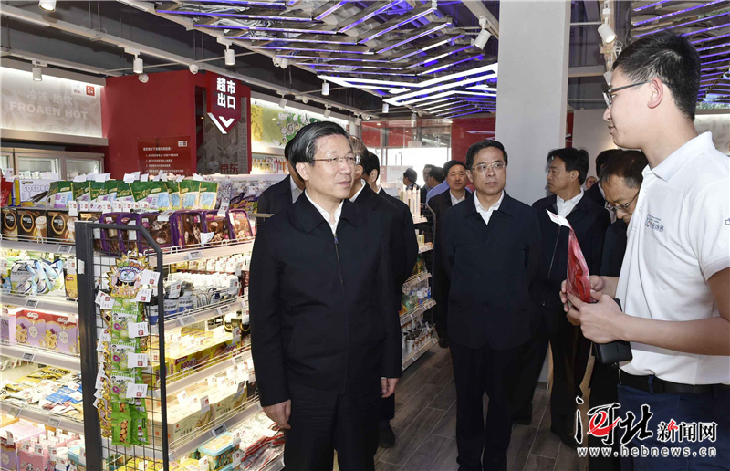 5月3日,省委理论学习中心组利用一天时间,到雄安新区现场调研并举行学习报告会。这是与会同志参观考察雄安市民服务中心。 记者赵威摄