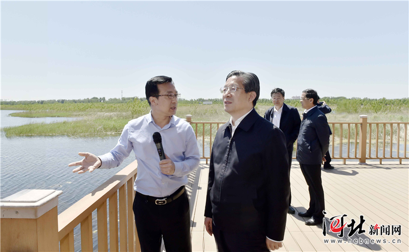 5月3日,省委理论学习中心组利用一天时间,到雄安新区现场调研并举行学习报告会。这是与会同志参观考察白洋淀。 记者赵威摄