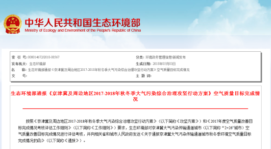 今天,生态环境部通报《京津冀及周边地区2017—2018年秋冬季大气污染综合治理攻坚行动方案》空气质量目标完成情况。按照攻坚行动方案和《2017年度空气质量改善目标完成情况考核评估工作细则》要求,生态环境部对京津冀大气污染传输通道城市(以下简称“2+26”城市)空气质量改善目标完成情况进行评估考核,其中我省廊坊、保定、石家庄、衡水、唐山5市考核结果为优秀。