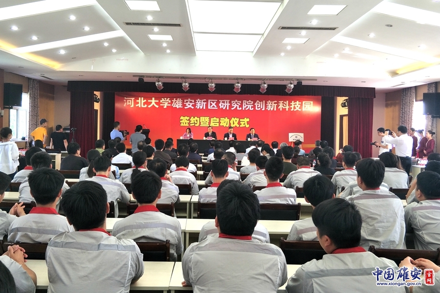 河北大学雄安新区研究院创新科技园签约暨启动仪式现场。记者 崔利杰 摄