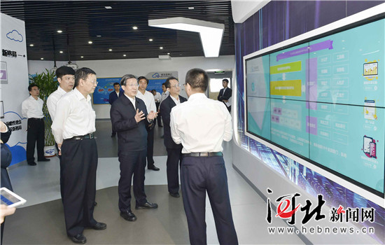 5月5日上午,省委书记、省人大常委会主任王东峰到省直有关单位调研检查网信工作。这是王东峰在省工信厅“政务云”大厅考察。 记者赵威摄