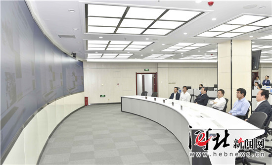 5月5日上午,省委书记、省人大常委会主任王东峰到省直有关单位调研检查网信工作。这是王东峰在省网信办互联网信息综合管理平台考察。 记者赵威摄