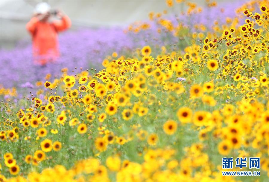 5月5日,游客在广西南宁市良庆区那马镇坛良村坛板坡花海里拍照。时下,广西南宁市良庆区那马镇坛良村坛板坡100多亩马鞭草和非洲雏菊竞相盛放,田园风光吸引了不少游客前来观赏。 新华社记者 周华 摄