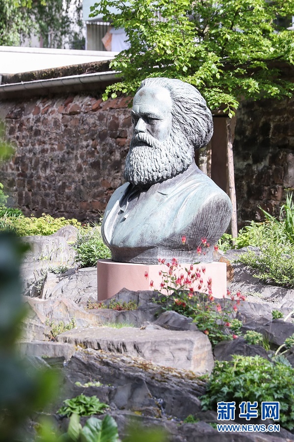 历史长河奔流不息,真理之光穿越时空。1818年5月5日,德国小城特里尔,一代伟人马克思诞生。200年后,世界东方。高擎马克思主义的精神火炬,在习近平新时代中国特色社会主义思想指引下,中国共产党正领导亿万人民书写人类发展史上新的奇迹。这是2018年5月3日在德国特里尔马克思故居纪念馆院内拍摄的马克思雕像。 新华社记者 单宇琦 摄