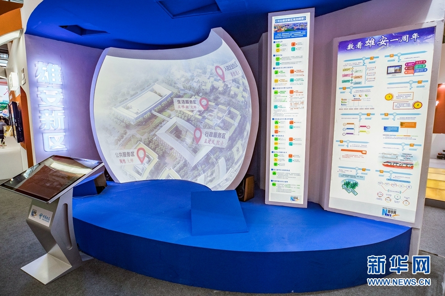 “雄安眼”的右侧配套设置有展板,观众可以浏览《河北雄安新区规划纲要》的重点内容,以及呈现雄安新区变化的图解新闻“数看雄安新区一周年”。