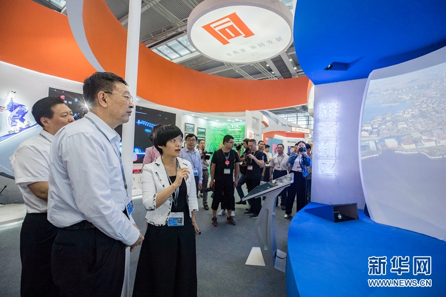 在展区现场,“雄安眼”正在播放由新华网制作的《航拍千年秀林》《千年雄安的诗和远方》《走进市民服务中心》等宣传片,吸引了一大批观众驻足欣赏。透过“雄安眼”,观众可以深入了解雄安新区的历史、人文、科技、未来等发展概况。