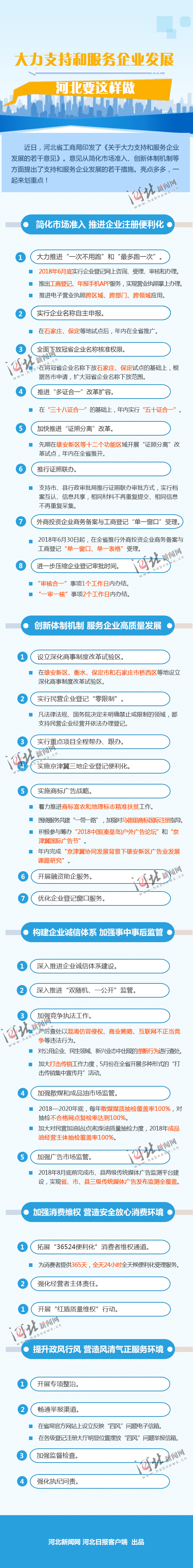 近日,河北省工商局印发了《关于大力支持和服务企业发展的若干意见》。意见从简化市场准入、创新体制机制等方面提出了支持和服务企业发展的若干措施。