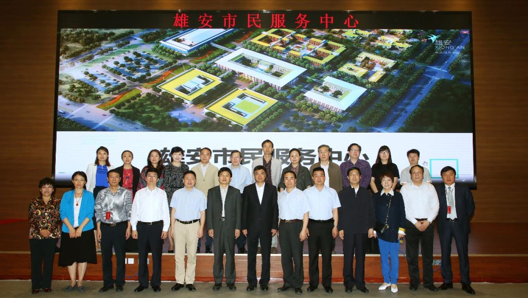 5月12日,省委常委、副省长,雄安新区党工委书记、管委会主任陈刚和雄安新区党工委委员、管委会副主任傅首清与专家团在雄安市民服务中心合影留念。