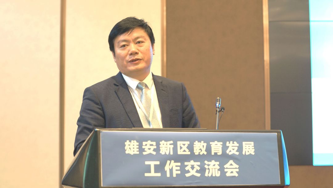 主题发言环节,北京外国语大学党委书记兼教育部教师工作司司长王定华提出12个发展理念:优先发展,把教育工作摆在优先发展的地位,优先谋划、优先投入、优先促进、优先安排、优先督察;继承发展,继承雄安三县人民重视教育和红色教育的优良传统;高位化发展,高端定位、高端谋划,对新建的园区,新建的学校要高起点、高标准、高质量、高要求;协同发展,充分调动京津冀和全国的优质资源,支持雄安的教育发展;协调发展,促进雄安基础教育、职业教育、高等教育协调发展;品质发展,推动学校品质提升,打造高品质学校;内涵发展,改进教学过程,更新教学手段,提高教学效率,促进学生思考、动手、力行、求真;国际发展,加强外语教学,促进国际理解,聘请更多外教,开展国际夏令营,建设国际学校,注重世界上先进思想的融通、融合、共享;生态发展,加强环境教育,建设现代学校制度,发挥教代会、职代会、家长委员会的正能量;智能发展,开展智慧教育,建设云平台,并与全国和河北省进行对接,让信息化助力新区教育的现代化;创新发展,让创新的思想不断地涌入,让新的教育流派在雄安滋生,营造教育家办学的制度环境;规范发展,坚持教育的正确政治方向,办社会主义教育。