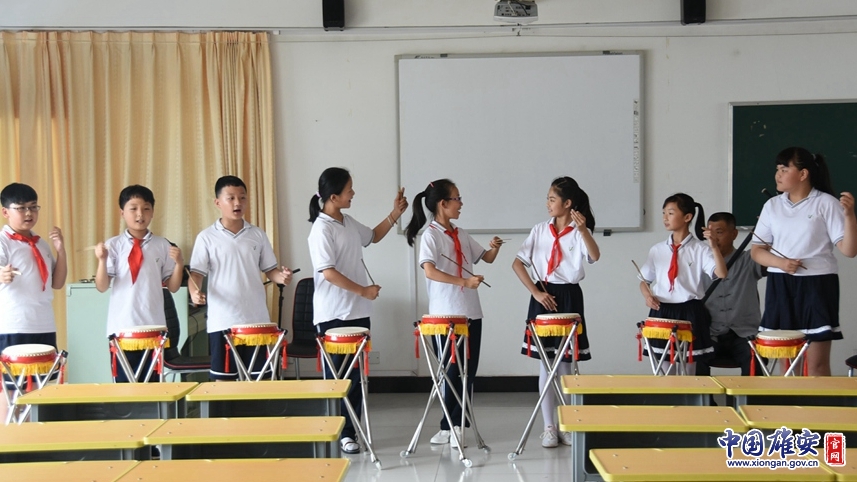 中国雄安官网5月15日电(记者陈潇、陈嫒嫒)“传统文化进课堂,中华精髓来弘扬。文化大厦根基筑,新区建设创辉煌”。5月15日下午,北京市朝阳区实验小学雄安校区五年级孩子右手拿着木棒,左手持着两片钢板,在王凤仙、邵振清夫妇的指导下,正在练习西河大鼓,为“六一”的表演做准备。