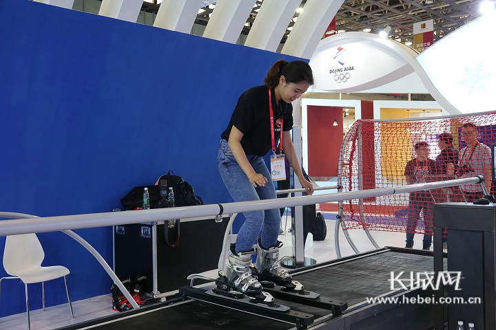 长城新媒体记者亲身体验3D滑雪模拟仪。记者 刘澜澜 摄