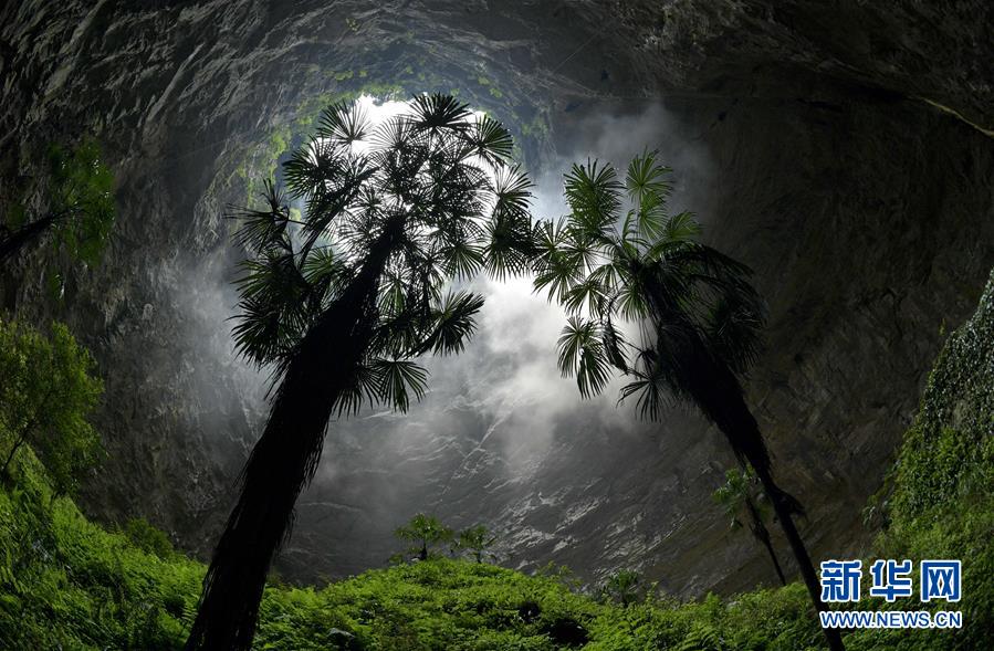 这是5月17日在湖北省宣恩县锣圈岩村天坑底部拍摄的植物。时值初夏,在湖北省恩施土家族苗族自治州宣恩县锣圈岩村,一个深达290余米的天坑里绿意浓浓。天坑底部面积近百亩,地貌和气候特征独特,造就了“天坑植物园”较为独立的生态系统。新华社发(宋文 摄)