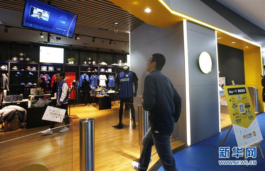 上海一名消费者通过面部识别进入位于杨浦区的“无人店”(2017年11月6日摄)。新华社记者 方喆 摄