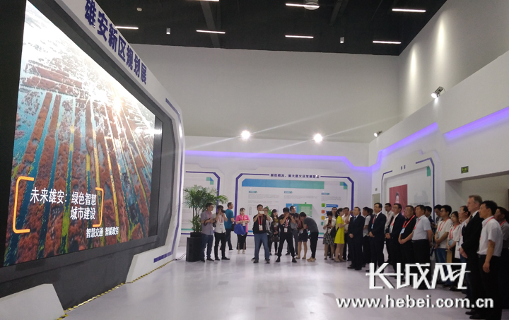 “未来雄安,绿色智慧,一座全球领先的数字城市,新时代中国的诗和远方……”一进入展馆,巨大的LED大屏正在轮播《诗与远方·雄安》的视频短片,嘉宾们纷纷驻足,仔细观看,不时对雄安新区未来的发展前景表达出由衷地赞叹。