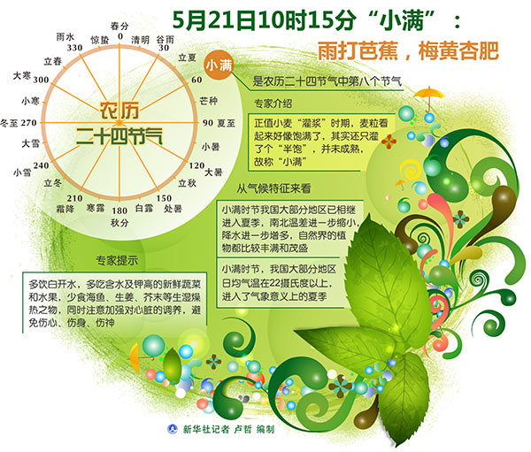 图表:5月21日10时15分“小满”:雨打芭蕉,梅黄杏肥 新华社记者 卢哲 编制
