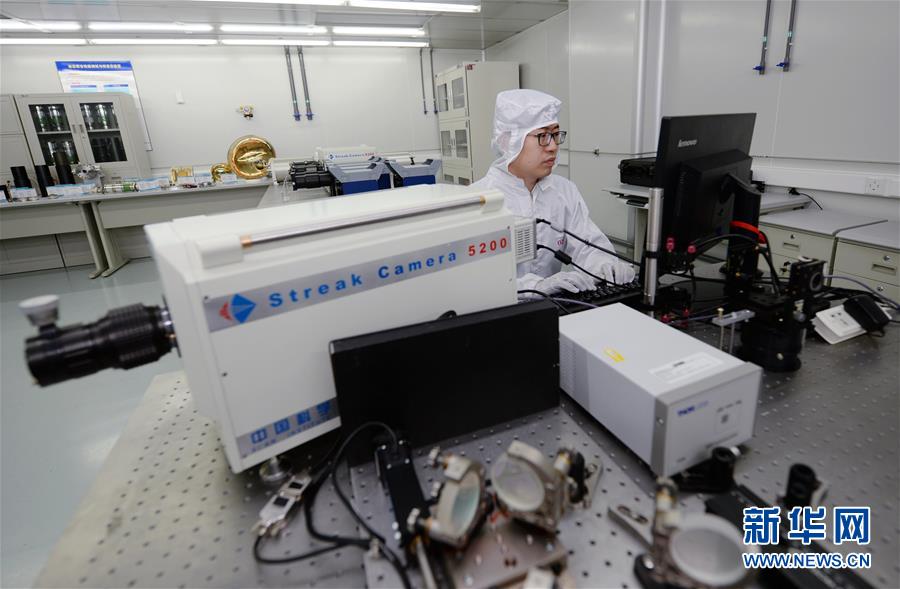 5月22日,中国科学院西安光学与精密机械研究所的科研人员对条纹相机的时间分辨特性进行标定。