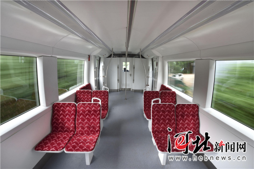 5月23日,由中车唐山机车车辆有限公司、国防科技大学、北京磁浮交通发展有限公司与中国科学院电工研究所等单位联合研制的第五代新型磁浮工程样车,在位于长沙的国防科技大学试验线运行试验成功。图为车厢内部照。张洋摄