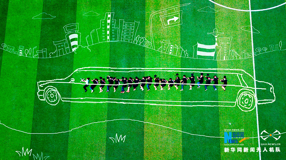 又到毕业季,各高校内总会看到一群群大学生,用各种创意拍摄毕业照。毕业季被一张张笑靥如花的脸庞定格。中国传媒大学南广学院的学生们摆出各种造型,用无人机记录下这难忘的一刻。虽然大家将各奔东西,但青春不会散场。新华网发(张鑫 摄)
