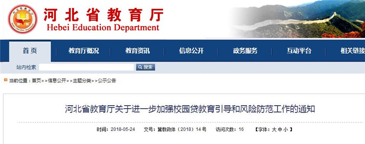 近日,省教育厅发布关于进一步加强校园贷教育引导和风险防范工作的通知。 为进一步教育引导学生树立正确的消费观念,加大校园贷风险防范力度,就有关事项通知如下↓↓↓
