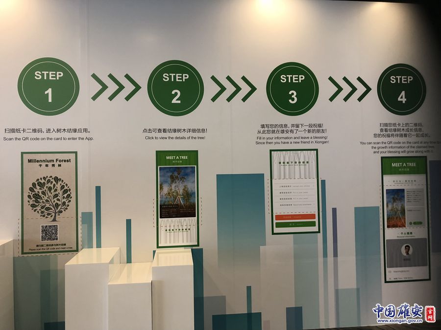 通过树木结缘应用,游客扫描二维码即可与“千年秀林”中的树木“结缘”,写下祝福,陪伴“千年秀林”共同成长。刘新 摄
