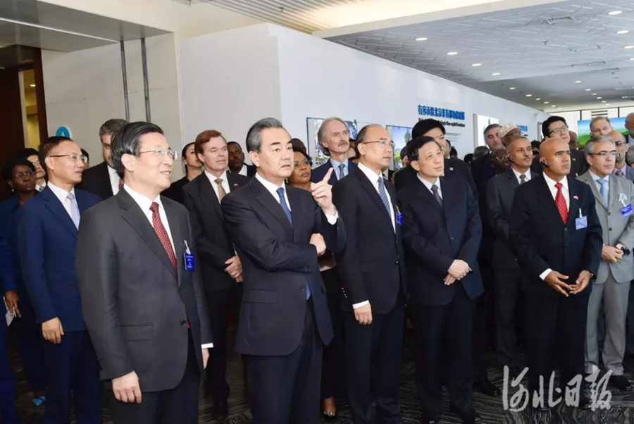 王毅指出,一年前,以习近平同志为核心的党中央宣布设立雄安新区,强调这是千年大计、国家大事。今年4月,《河北雄安新区规划纲要》向全社会公布,标志着雄安新区建设进入全面实施阶段。规划纲要明确了雄安新区建设绿色生态宜居新城区、创新驱动发展引领区、协调发展示范区、开放发展先行区的发展定位,雄安新区代表了中国的未来,引领了世界的潮流,也预示了人类发展的未来方向。