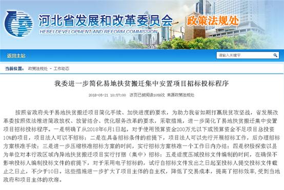 河北省简化易地扶贫搬迁集中安置项目招投标程序