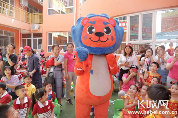 小萌狮和孩子们做游戏。刘存 摄