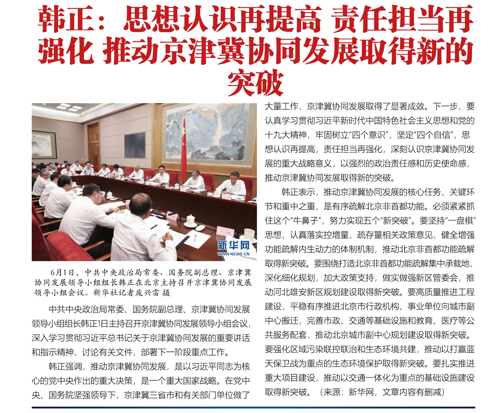 【雄安之声】韩正:推动京津冀协同发展取得新的突破