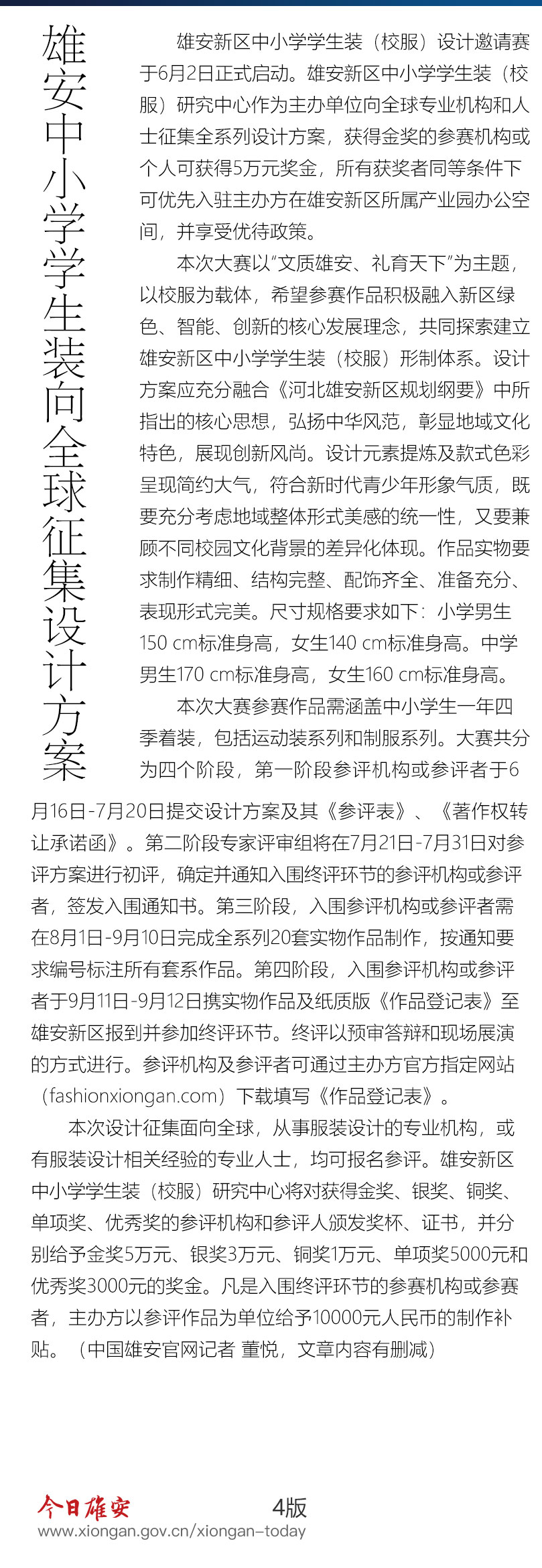 【雄安之声】雄安中小学学生装向全球征集设计方案