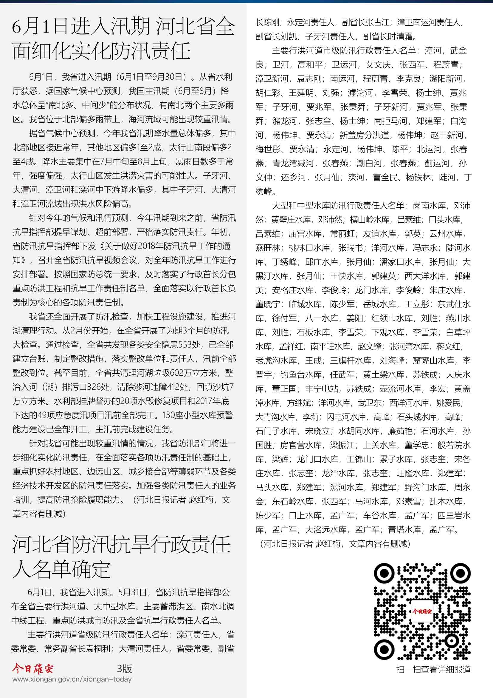 6月3日,省委书记、省人大常委会主任王东峰就深入推进生态环境保护、精准脱贫、防汛抗旱、“双创双服”、“三夏”生产等重点工作到保定市调研检查。