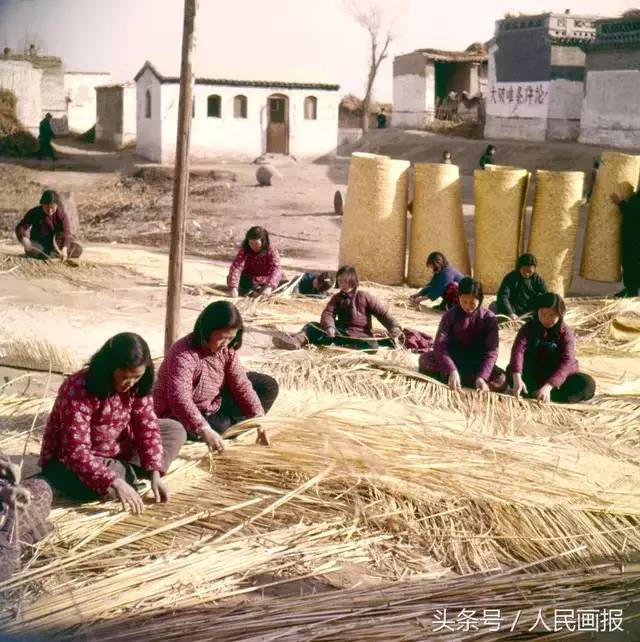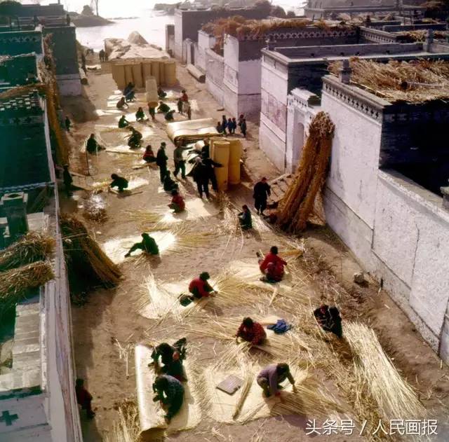 当年,采蒲台是水淀中央的一个小村庄,采蒲台的苇席闻名全国,这里的妇女都会编织苇席。(1959年)摄影 李曙