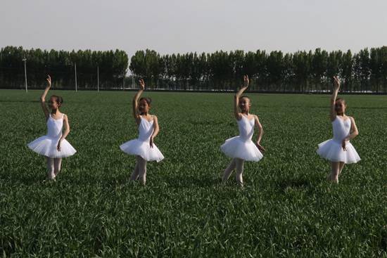 雄安新区安新县端村学校农民的孩子,在冀中平原的麦田里表演《天鹅湖 随想》。