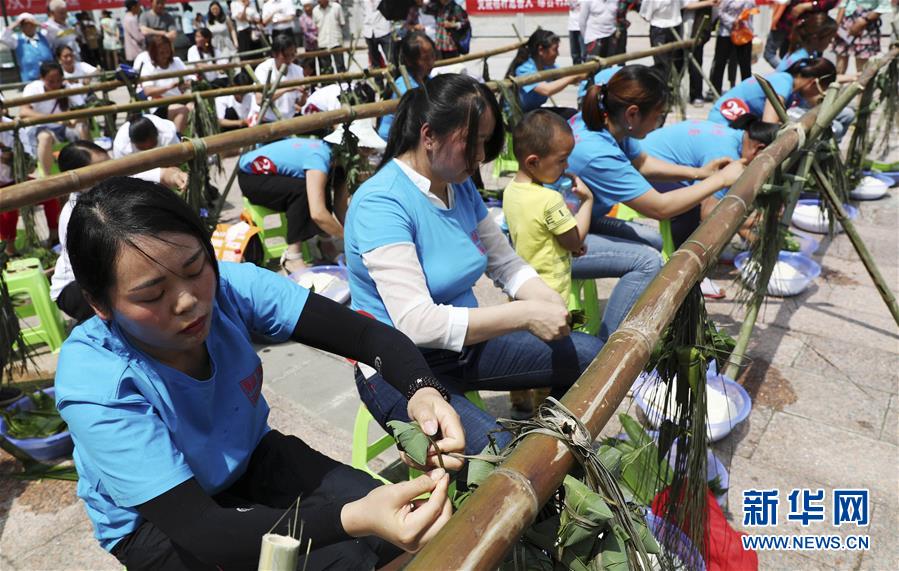 6月11日,在重庆市黔江区新华乡,居民们在参加包粽子比赛。当日,重庆市黔江区新华乡举行包粽子比赛,当地居民比拼包粽子技艺,迎接端午节的到来。 新华社发(杨敏 摄)