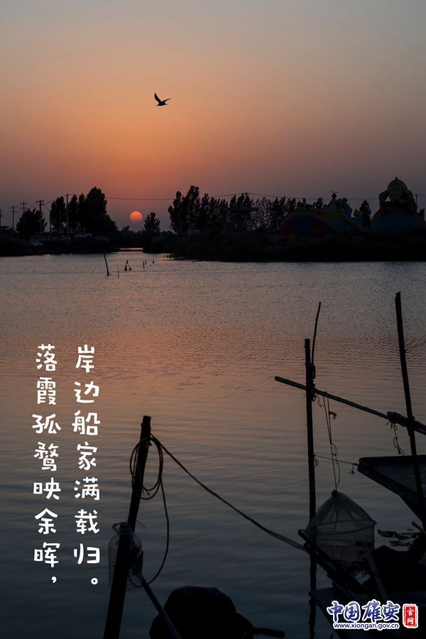 落霞孤鹜映余晖,岸边船家满载归。记者王永康 摄