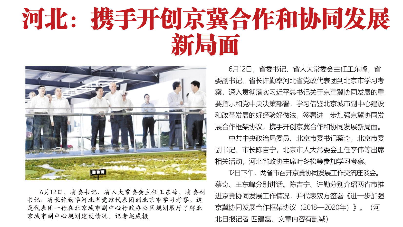 6月12日,省委书记、省人大常委会主任王东峰,省委副书记、省长许勤率河北省党政代表团到北京市学习考察。