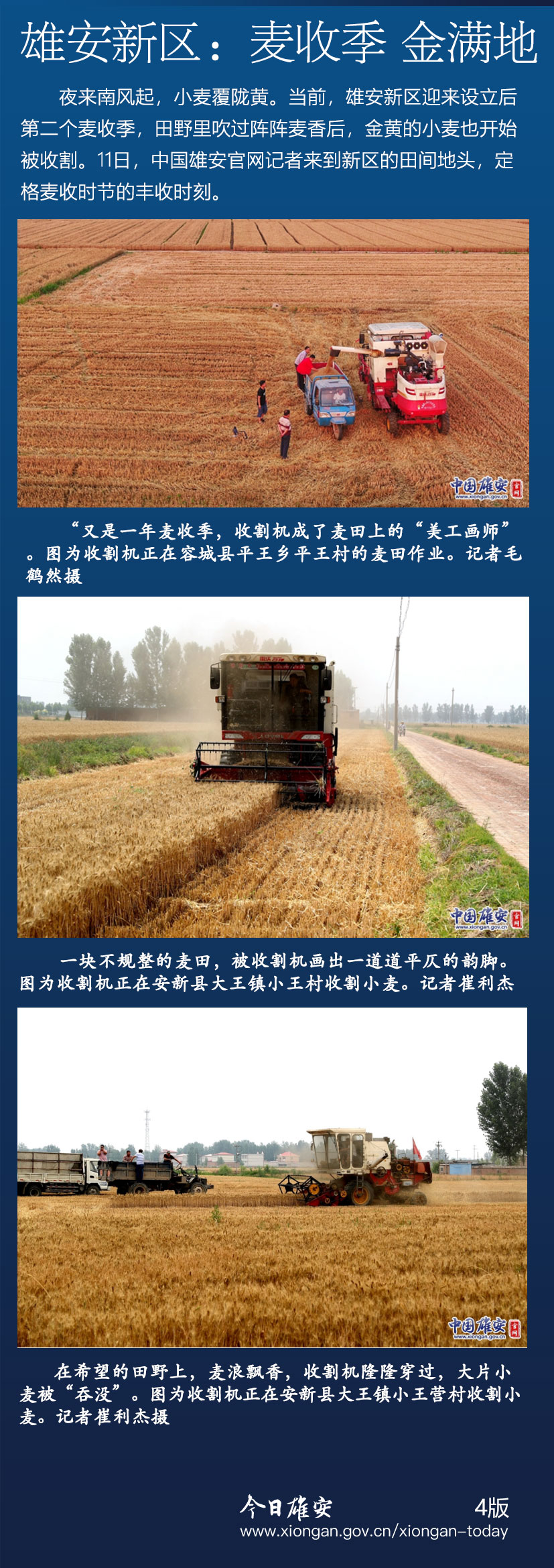 6月中旬,雄安新区迎来小麦收割、玉米播种的最佳时节,正所谓“黄金铺满地,老少皆弯腰”,安新县大王镇的农民也开始了忙碌的农田麦收。