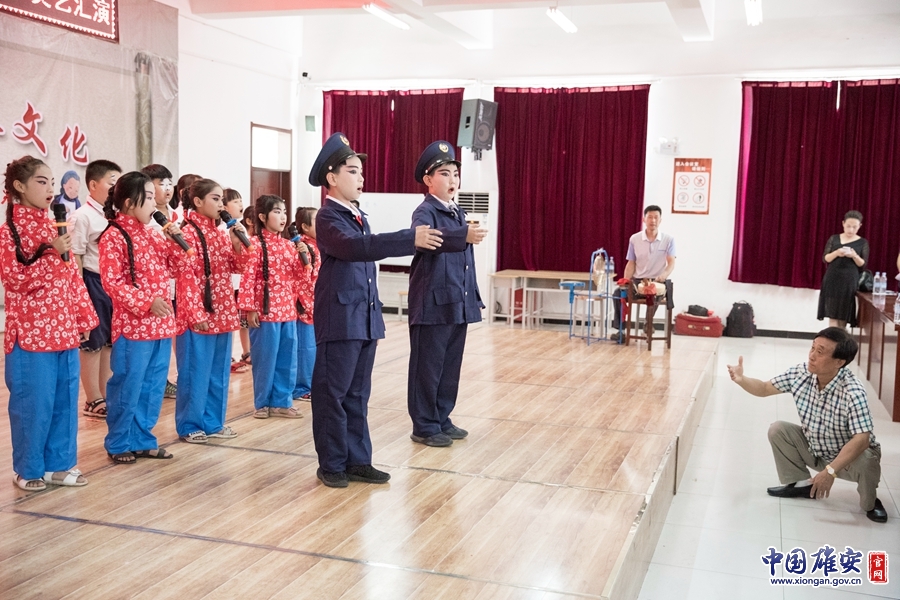 雄县第三小学的戏曲社团才成立三个月,但每个孩子都很珍惜上台演出的机会,戏曲协会的老师在学生表演《红灯记》时同步指导,让学生留下关于雄安端午的美好记忆。记者王永康 摄