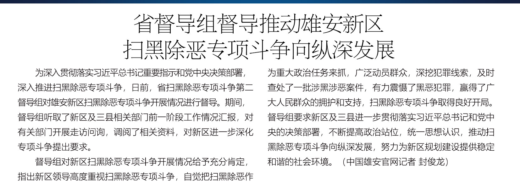 日前,省扫黑除恶专项斗争第二督导组对雄安新区扫黑除恶专项斗争开展情况进行督导。