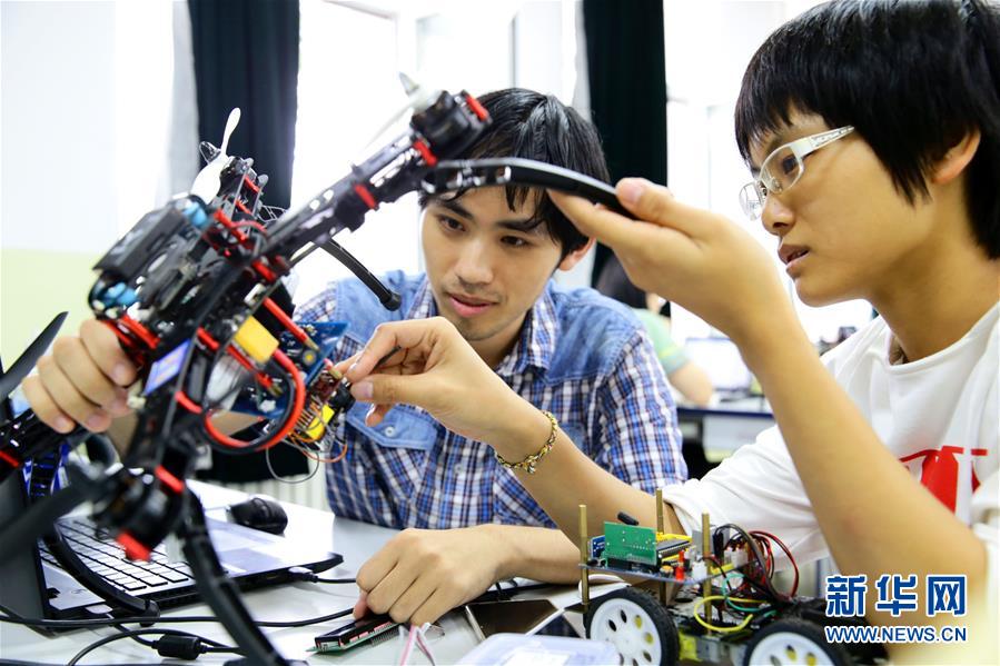 2017年8月9日,北京理工大学学生参加2017年全国大学生电子设计竞赛飞行器设计比赛。
