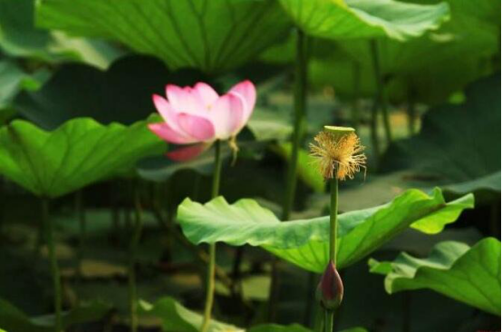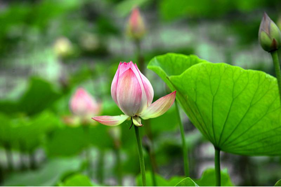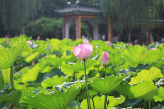 时光穿过夏至,石家庄长安公园的荷花已悄然绽放,陆续盛开的荷花随风摇曳,粉色的花朵高出水面、亭亭玉立,引来蜻蜓低回。翠绿的荷叶,挨挨挤挤像碧罗裙连成了片,令人心旷神怡!